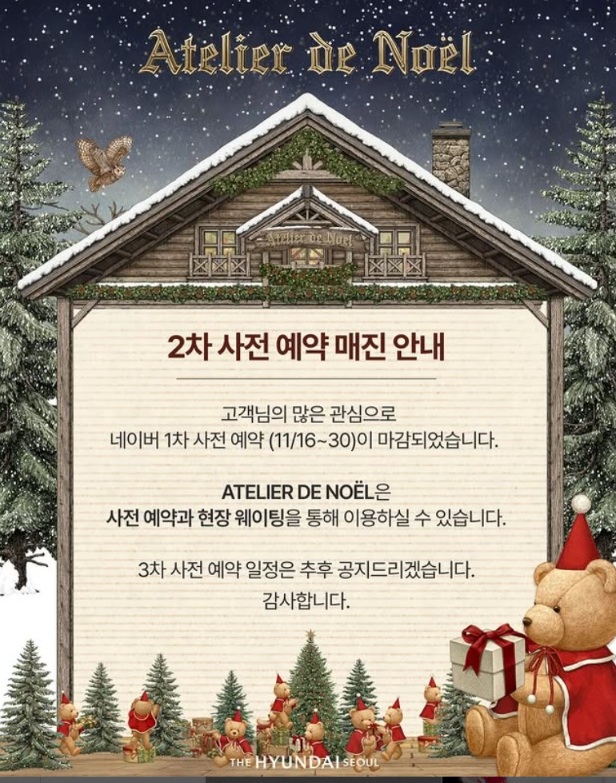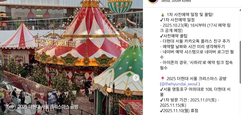 벌써 예약이 끝났다고요?! 더현대서울 크리스마스 빌리지는 연말 서울에서 가장 인기 있는 장소 중 하나로, 오픈 첫 주말에만 2만 명 이상이 다녀갔습니다. 작년 누적 방문객은 무려 100만 명 이상! 아직 사전예약 안 하셨다면, 지금 이 글이 마지막 기회일 수 있어요.