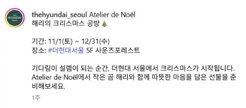 단순한 포토존을 넘어, 동화 속 세계에 들어온 듯한 몰입감! 더현대서울 크리스마스 빌리지는 가족, 연인, 친구 누구와 가도 만족할 수 있는 서울 연말 필수 코스입니다.