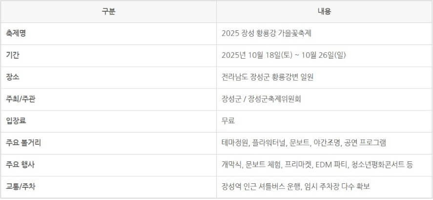 2025 장성 황룡강 가을꽃축제 일정 및 장소