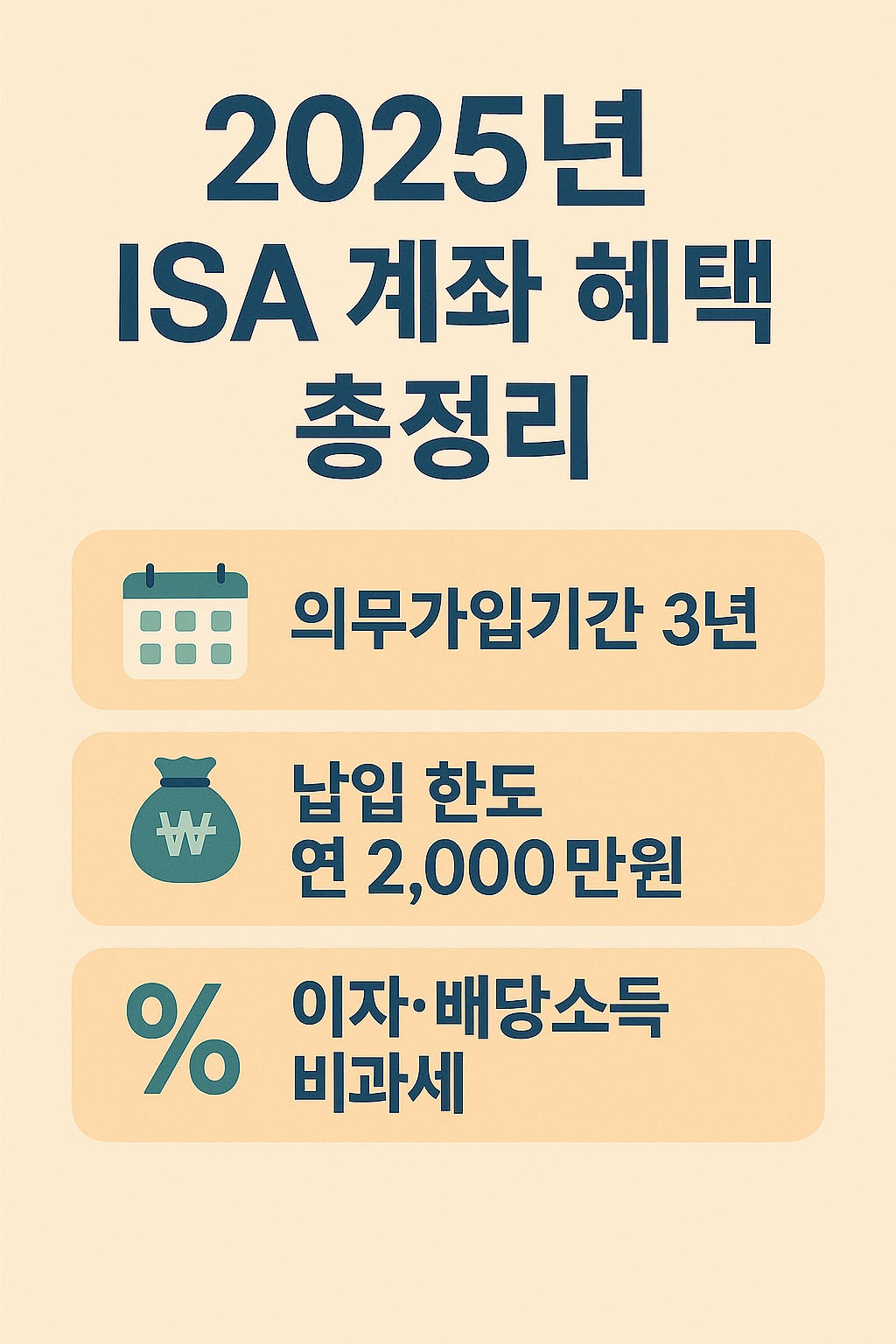 2025년은 ISA 계좌로 절세와 투자를 동시에 잡을 수 있는 절호의 해입니다. 제도 변경을 놓치지 말고, 본인 상황에 맞는 ISA 유형을 선택해 세금도 줄이고 수익도 늘리는 스마트한 재테크 전략을 세워보세요. 아직 계좌가 없다면 지금 바로 개설하고, 있는 분들은 구성 상품을 점검해 보는 것이 좋습니다.